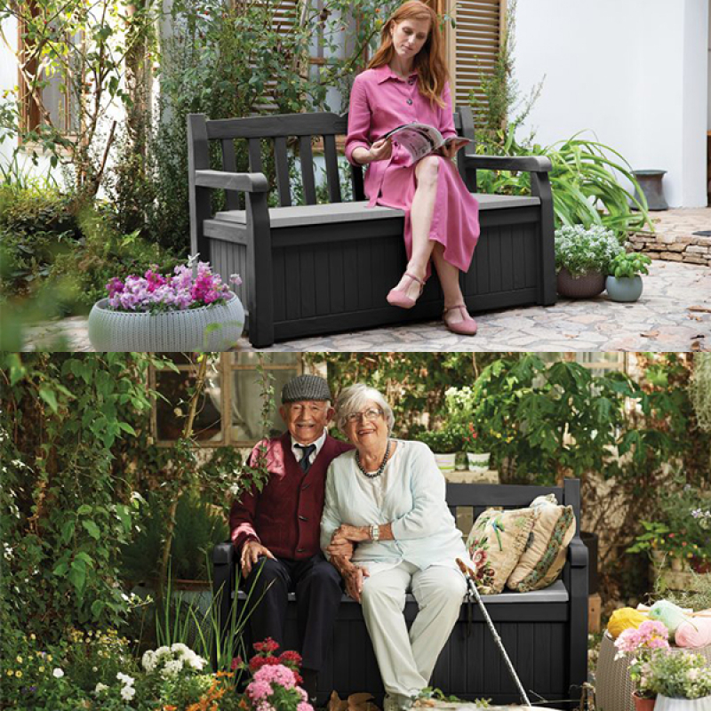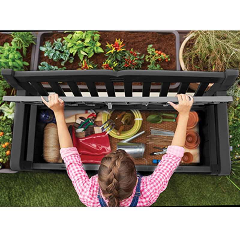 Opis - Baštenska klupa-kutija za odlaganje 265L Eden grafit Keter CU 250076Baštenska klupa-kutija za odlaganje 265L Eden grafit Keter CU 250076 Baštenska klupa-kutija za odlaganje Eden je moderna klupa ili funkcionalna kutija za skladištenje? Eden klupa sanduk za odlaganje je genijalno rešenje za one koji žele da organizuju svoju baštu na elegantan ali i praktičan način. Zahvaljujući velikom kapacitetu baštenske klupe Eden, možete smestiti u kutiji ćebe i jastuke, pa čak i rekreativnu opremu. Pored toga, tekstura površine koja podseća na prirodno drvo savršeno ističe šarm i stil bašte. Baštenska klupa se dobija rasklopljena. Uz artikal dobijate uputstvo za sklapanje.