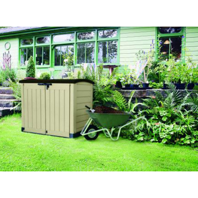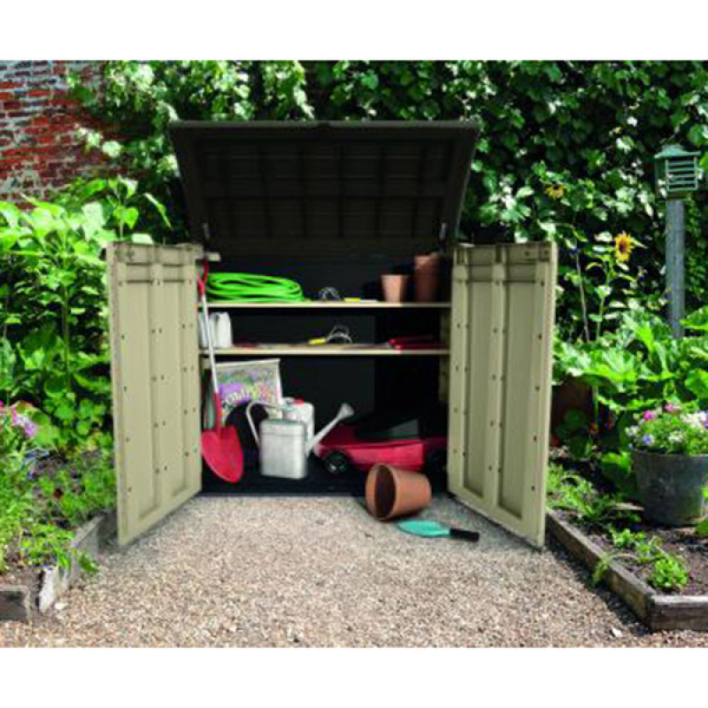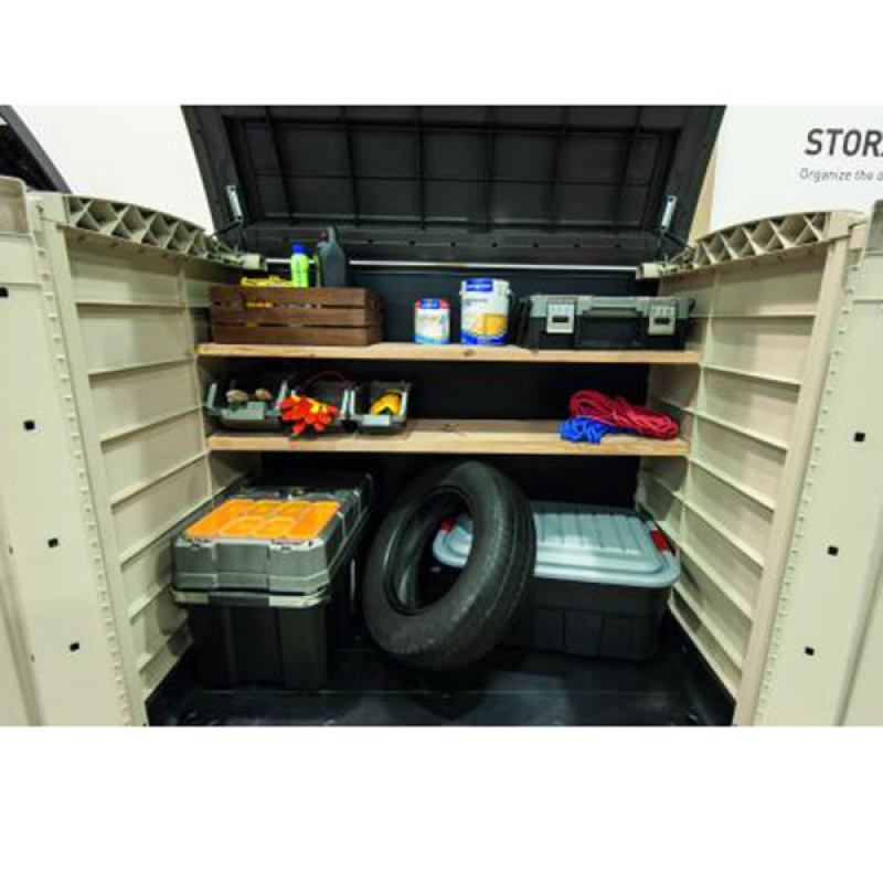 Opis - Baštenski orman Store It Out Bež/Braon CU 230437Baštenski orman Store It Out Bež/Braon CU 230437- jedinica za skladištenje je optimalno rešenje za skladištenje vrtne opreme, pribora i alata, kao i različitih vrsta kućnih artikala. Baštenski orman Store It Out Bež/Braon CU 230437 ima optimalne dimenzije i horizontalnu konstrukciju koja omogućava baštenskom ormanu da bude postavljen upravo na ona mesta gde je najpotrebniji. Baštenski orman je napravljen je od visokokvalitetnih materijala koji štite artikle od nepovoljnih vremenskih uslova, prljavštine ili vlage. Baštenski orman Store It Out Bež/Braon CU 230437 jednostavnog i elegantnog dizajna, sa univerzalnom paletom boja koja podseća na prirodno drvo, garantuje da će se savršeno uklopiti u vaš spoljašnji prostorni raspored. Opcija za ugradnju polica dodatno povećava vrednost baštenskog ormana.