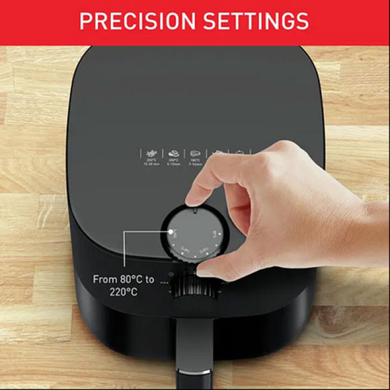 - zapremina: 3,5 l - dovoljno velika za pripremu hrane za do 4 osobe - snaga: 1030W - dimenzije (DxŠxV): 35,3x24,7x29,6cm - Brza i energetski efikasna - Lako pripremite svoje omiljene recepte uz fritezu na vruć vazduh koja osigurava brze rezultate* i maksimalnu energetsku efikasnost.** - Raznovrsne pripreme - Uživajte u kuvanju ukusnih, zdravih obroka sa lakoćom – od savršeno hrskavog pomfrita i pečene piletine do povrća, čak i dezerata - Tehnologija vrućeg vazduha - Tehnologija vrućeg vazduha donosi savršeni balans temperature i protoka vrućeg vazduha za hrskave, zlatnožute rezultate sa malo ulja ili bez ulja – uživajte u 99% manje dodate masnoće nego u fritezu!* *99% manje dodatih masnoća: za 600gr pomfrita pripremljenog sa 7ml ulja, u poređenju sa tradicionalnom pripremom u fritezi sa 2L - Delovi se mogu prati u mašini za posuđe - Kada je priprema završena, jednostavno uklonite korpu i postavite je u mašinu za posuđe, za jednostavno održavanje i optimalnu higijenu - Precizna podešavanja - Uživajte u savršenim rezultatima uz potpunu lakoću zahvaljujući veoma preciznom kontrolom temperature i tajmerom - do 200°C i 60 minuta - Dizajn koji štedi prostor - Uštedite prostor na radnoj ploči kuhinje uz kompaktnu, modernu fritezu na vruć vazduh, uz kapacitet od 3,5L – osiguravajući savršene, zdrave obroke idealne za do 4 osobe Deklaracija